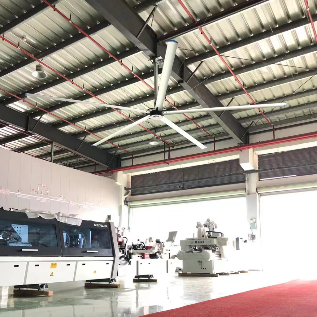 HVLS fans consume minimal energy, often less than 1 kW while covering vast areas, reducing HVAC loads by up to 30% and lowering utility bills significantly. Their design maximizes airflow efficiency. We can help calculate potential savings and provide eco-friendly HVLS models to enhance your facility’s sustainability.